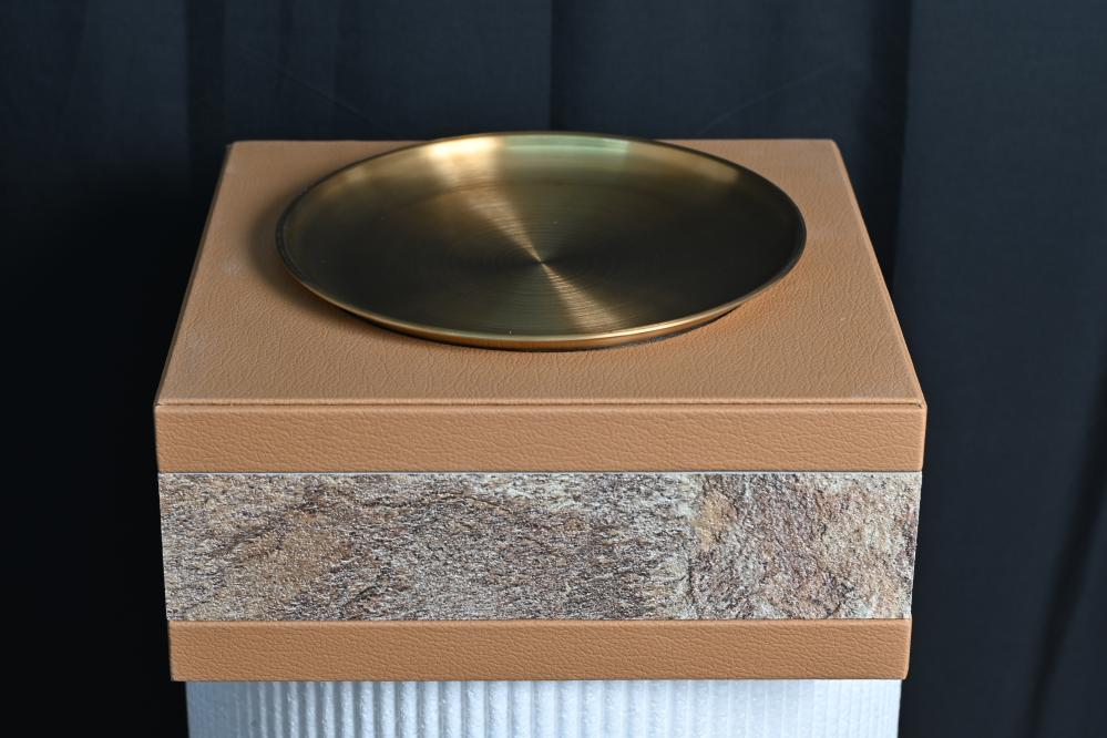 تبسي جلد مع رخام اختيار العبار حسب الطلب مقاس 30*30*15سم