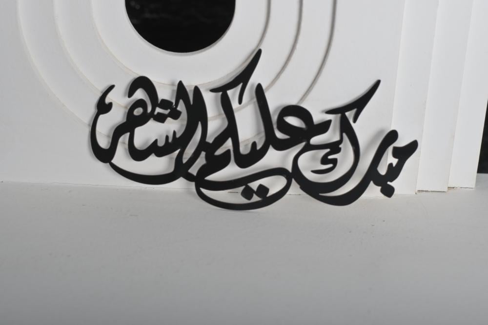 عبارة لون اسود (مبارك عليكم الشهر) اكريلك لاصق 15*7سم