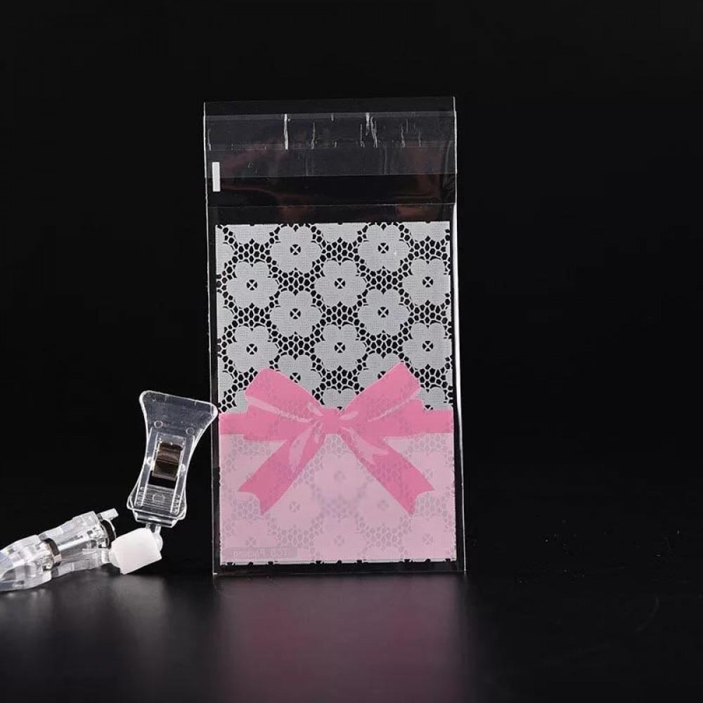 مجموعة(100) كيس للكوكيز والحلويات - وردي فيونكه