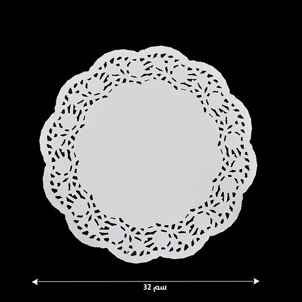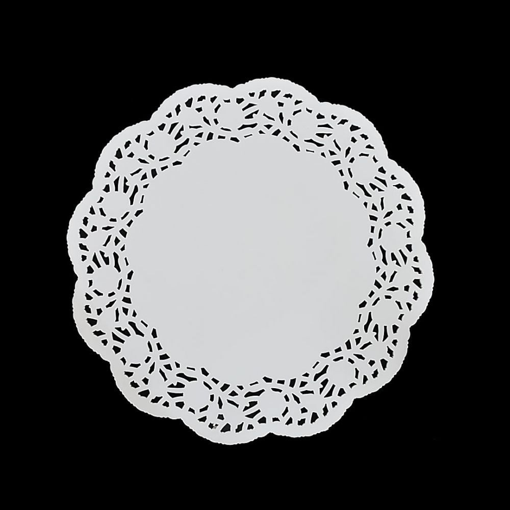 مجموعة ( 100) ورق دانتيل ابيض بشكل دائرى