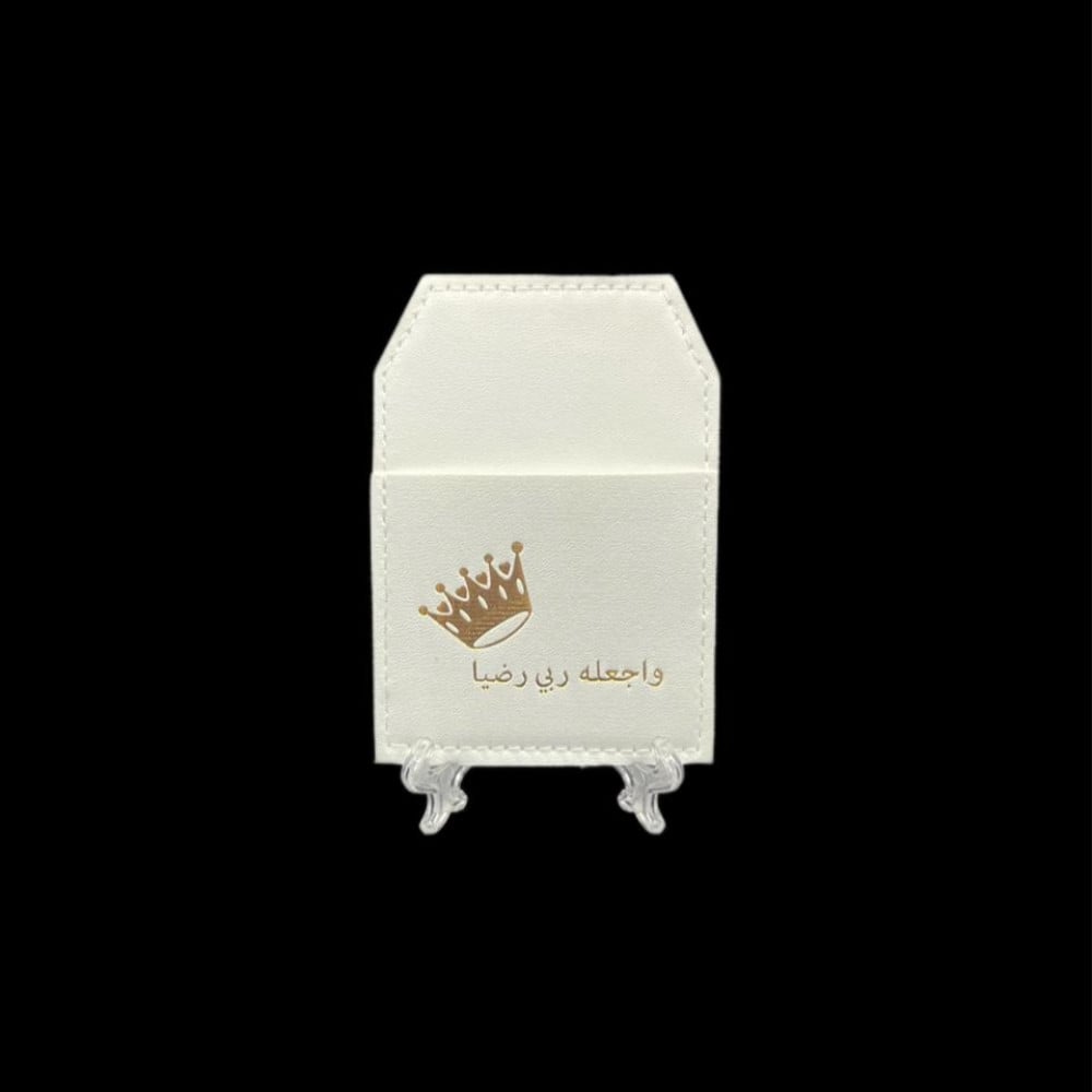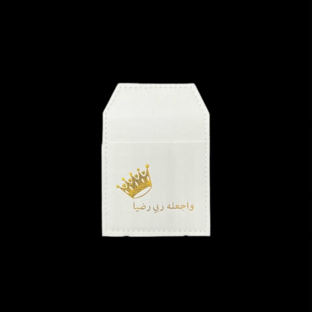 شارك مشاعر البهجة والفرح مع عائلتك وأحبابك وقدم لهم الهدايا في جيوب توزيعات انيقة مصنوعة من الجلد الفاخر بلون ابيض وعبارة *واجعله ربي رضيا*