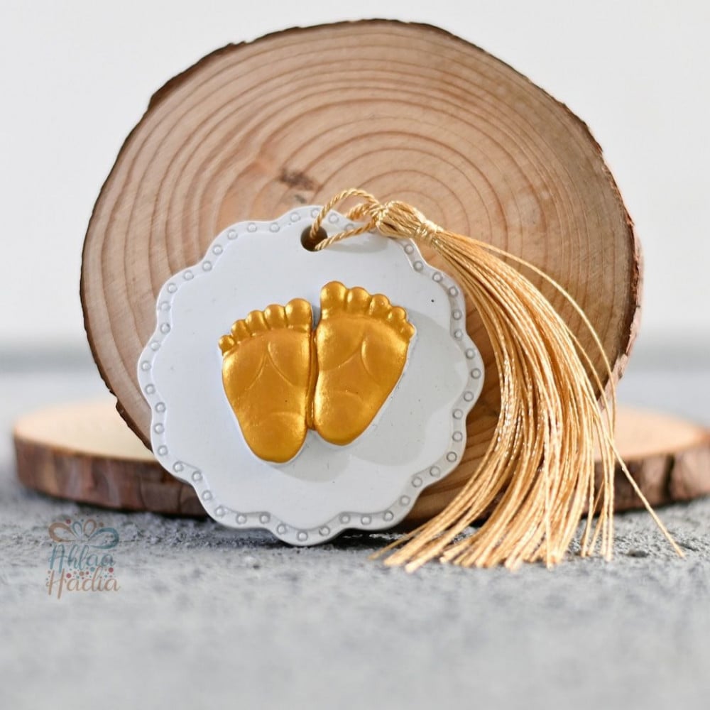 مجموعة (12) حجر بصمة بشكل قدم طفل اللون ذهبي