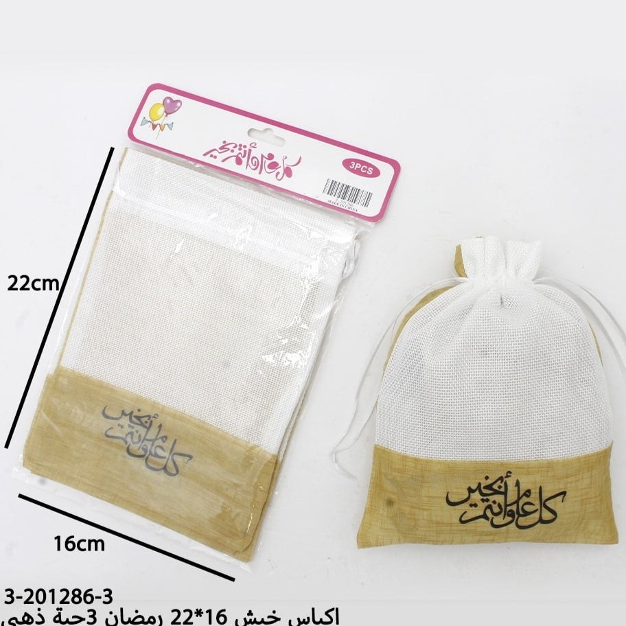 مجموعه (12)اكياس خيش رمضانية كل عام واتم بخير 22*16