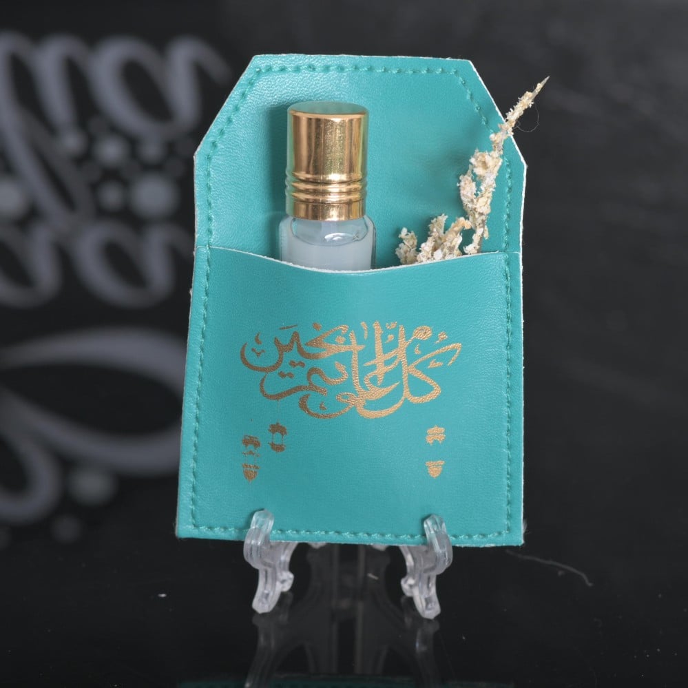 مجموعه (12) جيوب جلد اخضر مع ربع تولة مسك وقاعدة اكريلك