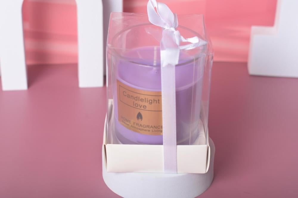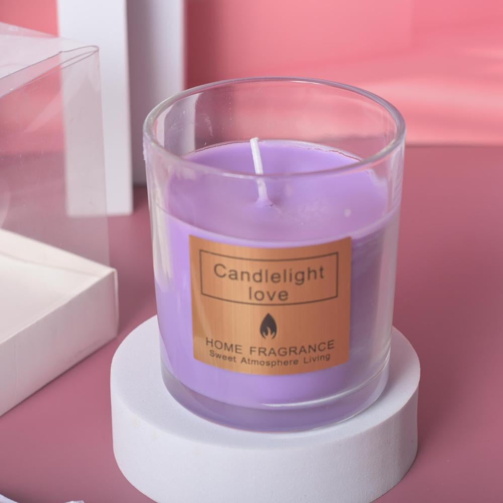 مجموعه (12) شموع زجاجية بي علبة موف مع علبة شفاف
