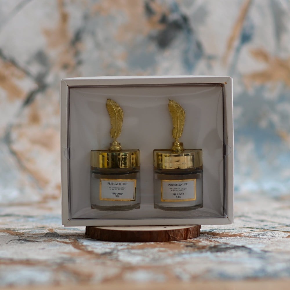 مجموعه (12) شموع زجاج بي علبة شكل ريشة