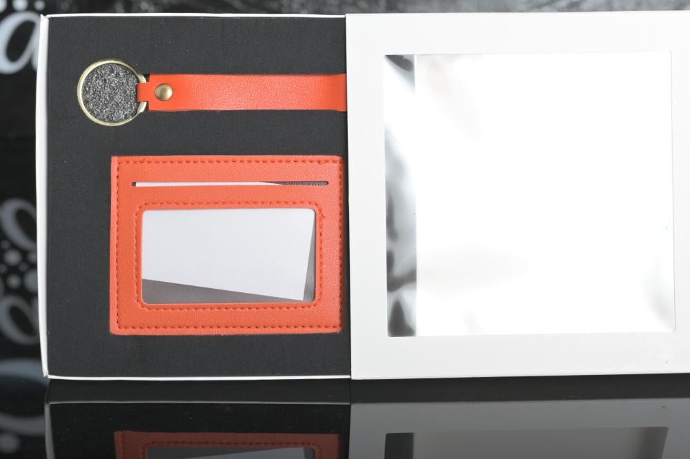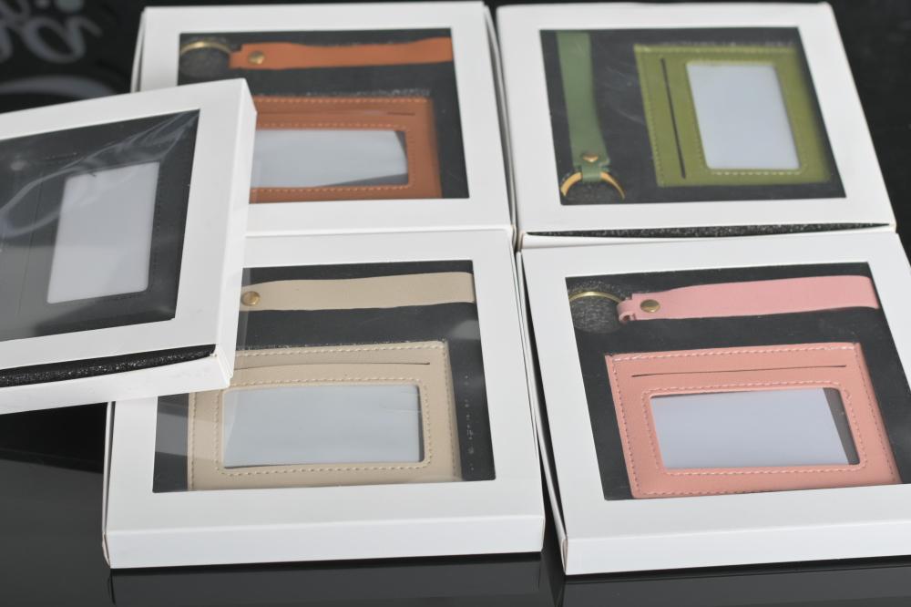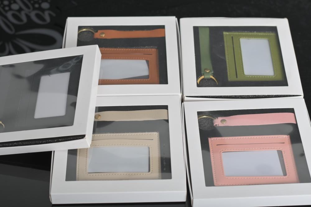 مجموعه(12) محفظة جلد مع الميدلية بي علبة شفاف 17*16سم
