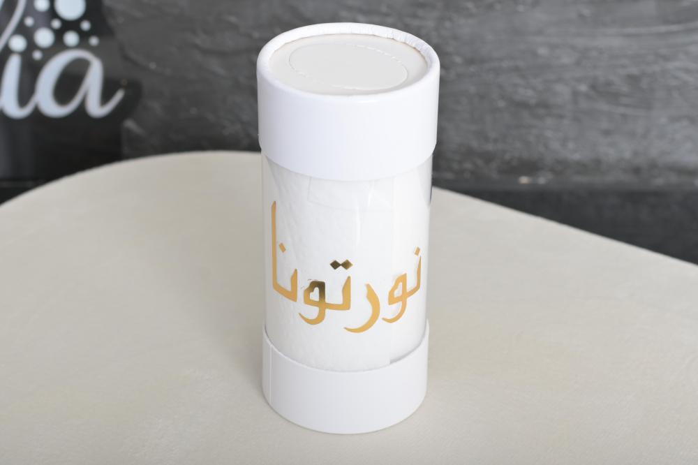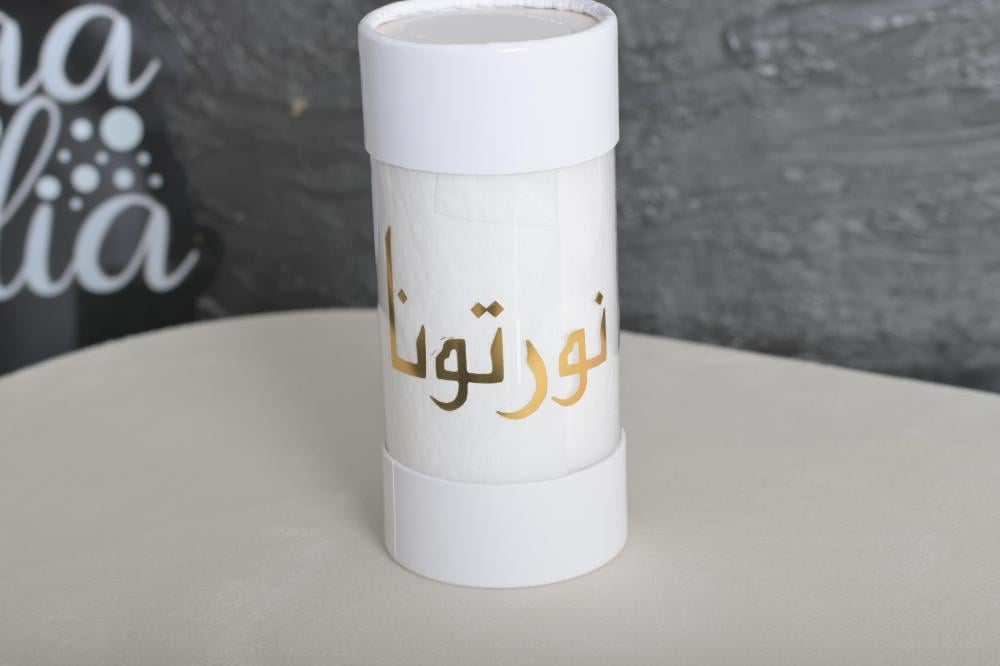 مجموعه (12) مناديل اسطواني ابيض بي عبارة انورتونا مقاس 16*6سم