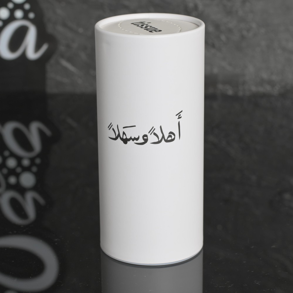 مجموعه (12) مناديل اسطواني عبارة هلا وسهلاا6*16سم
